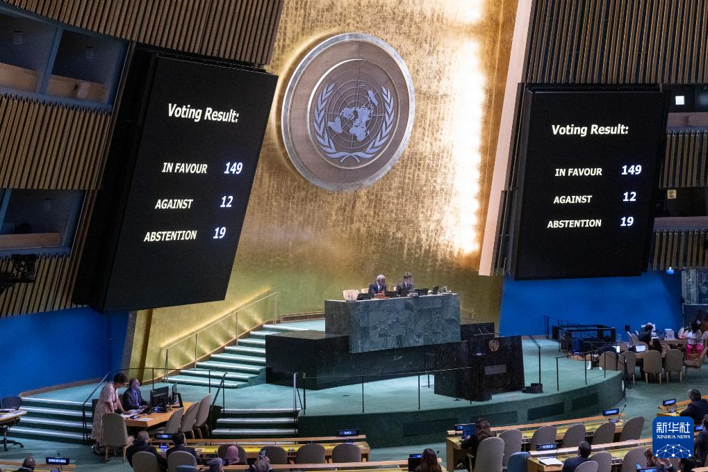 該決議以149票贊成、12票反對、19票棄權(quán)的表決結(jié)果獲得通過。除以色列和美國外,阿根廷、斐濟、匈牙利、密克羅尼西亞、瑙魯、帕勞、巴布亞新幾內(nèi)亞、巴拉圭、湯加、圖瓦盧投了反對票。