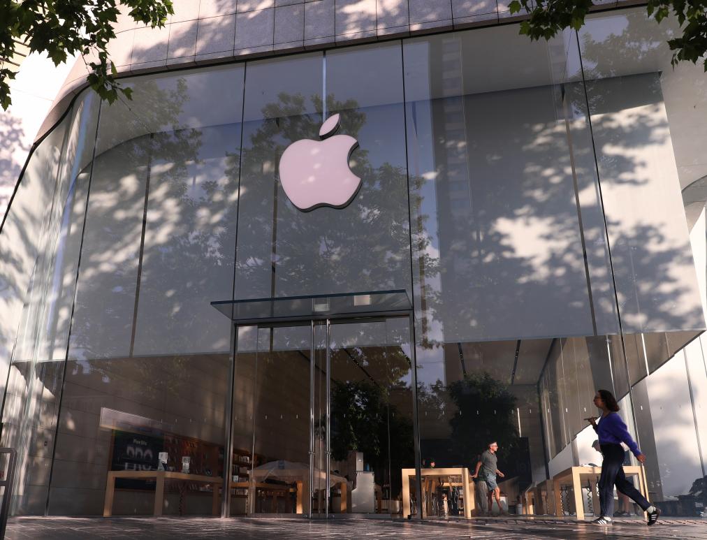 這是5月23日在比利時布魯塞爾拍攝的一家蘋果門店。新華社記者趙丁喆攝