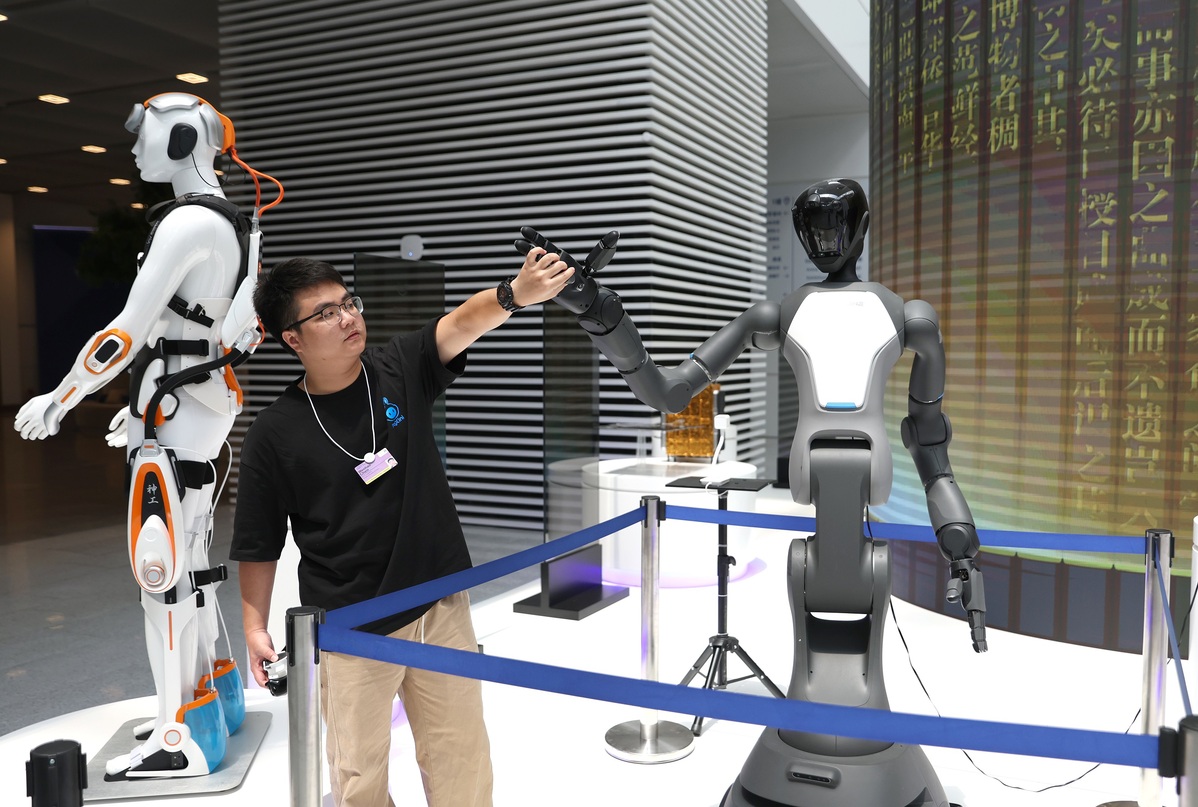 6月23日,工作人員調試機器人。中國日報記者 鄒紅 攝