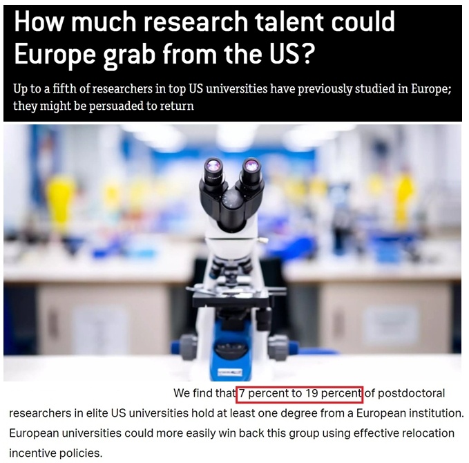 數(shù)據(jù)顯示,在美國頂級大學(xué)工作的博士后中,有7%到19%曾在歐洲獲得學(xué)位。對于這些人來說,歐洲有著更強的吸引力。