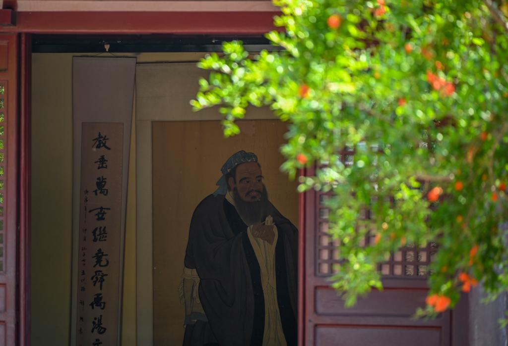 尼山孔廟及書(shū)院景區(qū)的孔子像(5月21日攝)。新華社記者 陳朔 攝