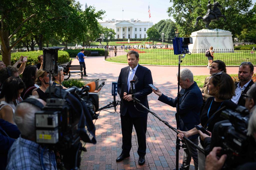 8月4日,德國副總理兼財政部長克林拜爾在華盛頓會見記者。新華社/法新