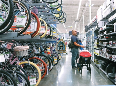 消費者在美國加利福尼亞州洛杉磯縣一家沃爾瑪商店內采購商品。