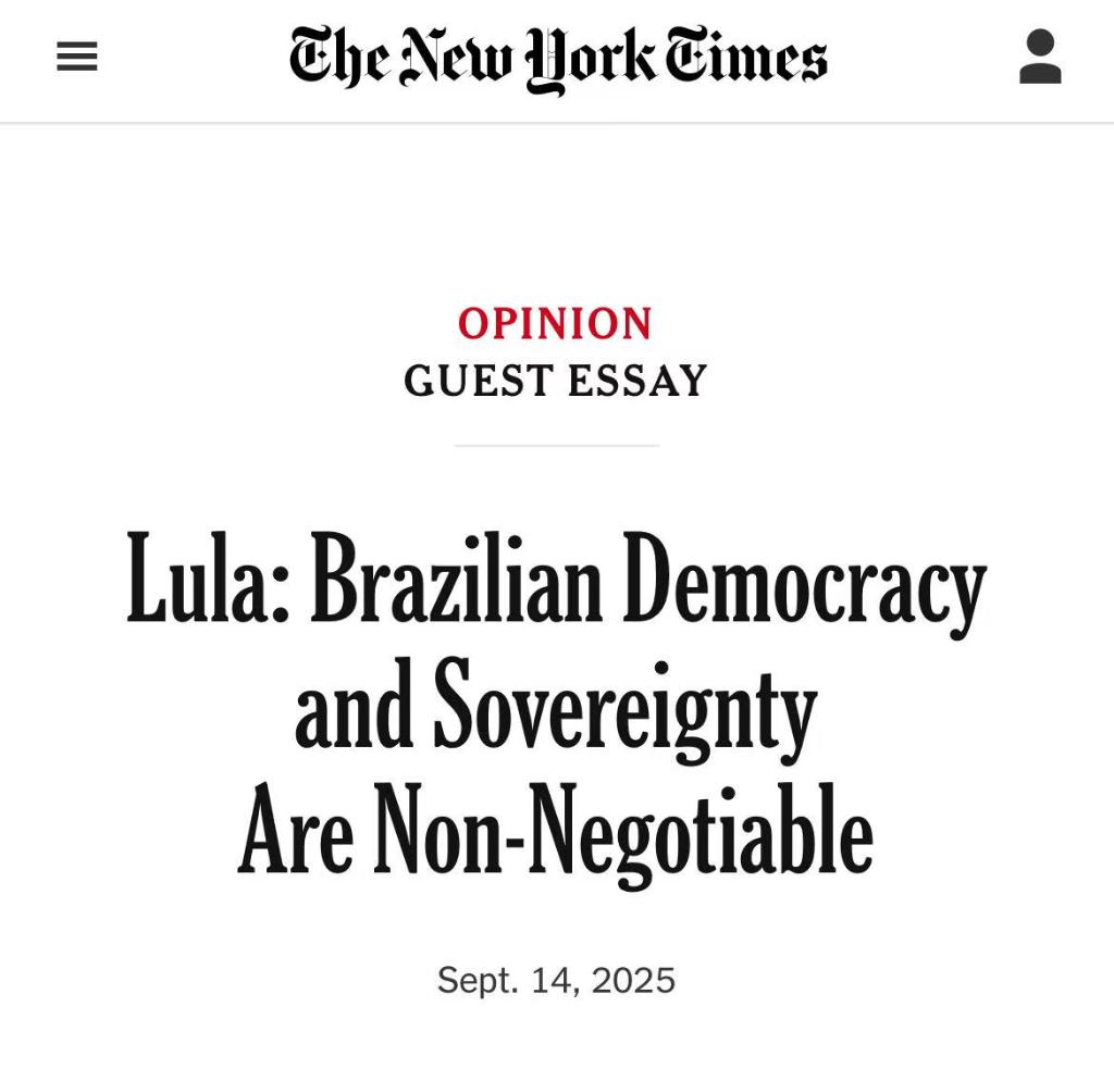 巴西總統(tǒng)盧拉9月14日在美國《紐約時報》觀點(diǎn)專欄發(fā)表客座文章。