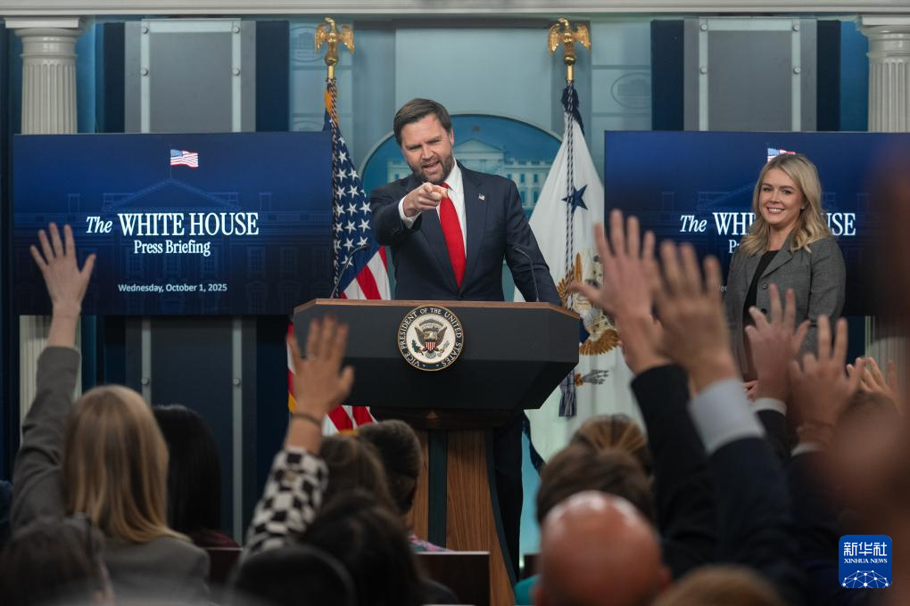 10月1日,在美國(guó)首都華盛頓白宮,美國(guó)副總統(tǒng)萬斯回答記者提問。新華社記者胡友松攝