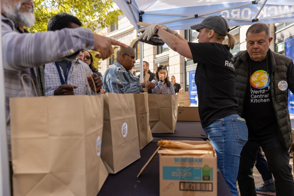 11月5日,在美國首都華盛頓,聯(lián)邦雇員排隊領(lǐng)取免費食物。新華社記者胡友松攝