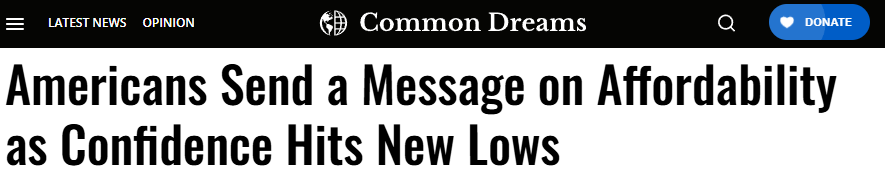 “基層合作組織”(Groundwork Collaborative)政策與倡導(dǎo)部門主管亞歷克斯·雅克茲指出,美民眾對經(jīng)濟(jì)的信心下滑源于實際生活壓力的加重。他認(rèn)為,當(dāng)前政府在經(jīng)濟(jì)管理上未能有效改善民生,反而導(dǎo)致家庭債務(wù)創(chuàng)下新高,物價不斷上漲,信心指數(shù)自然跌至低谷。