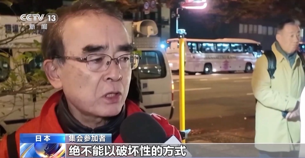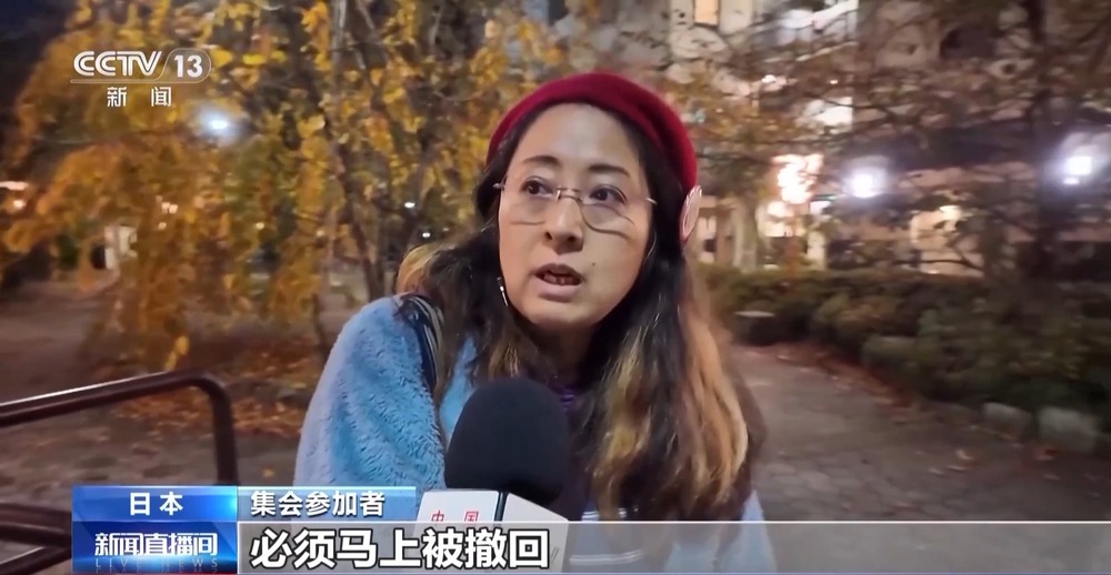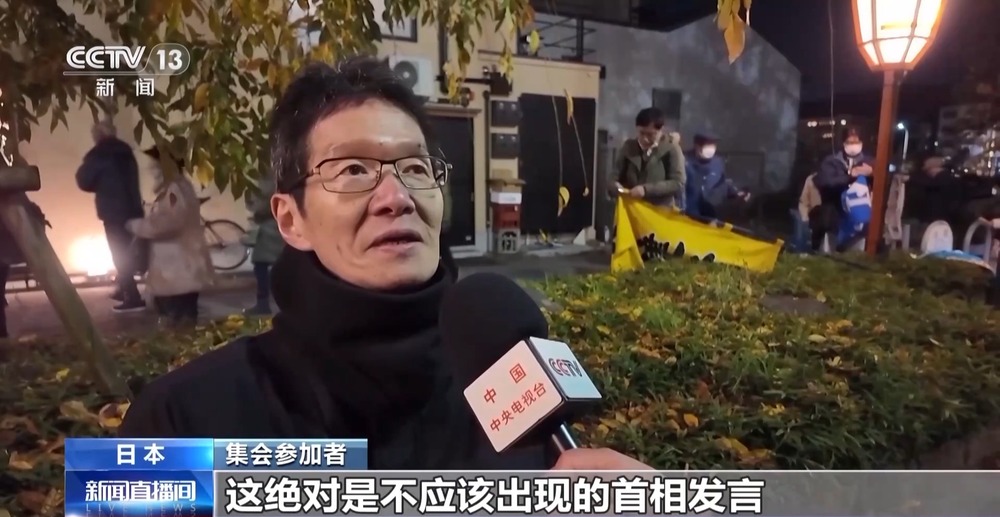集會參加者:我當(dāng)然認(rèn)為高市應(yīng)該撤回錯(cuò)誤言論,對于國民來說,這絕對是不應(yīng)該出現(xiàn)的首相發(fā)言,我認(rèn)為這是違反憲法的。