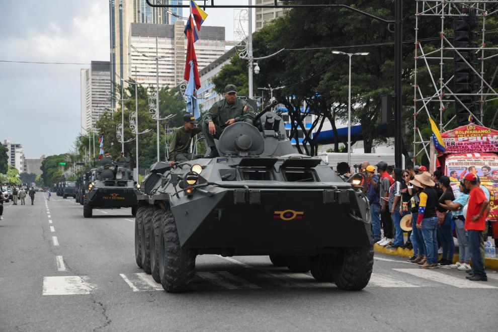 9月23日,在委內(nèi)瑞拉首都加拉加斯,參加游行的裝甲車輛列隊(duì)行進(jìn)。當(dāng)天,加拉加斯舉行大規(guī)模游行,呼吁保衛(wèi)委內(nèi)瑞拉主權(quán)與和平,反對美國在加勒比海域的軍事威脅。新華社發(fā)(馬科斯·薩爾加多攝)