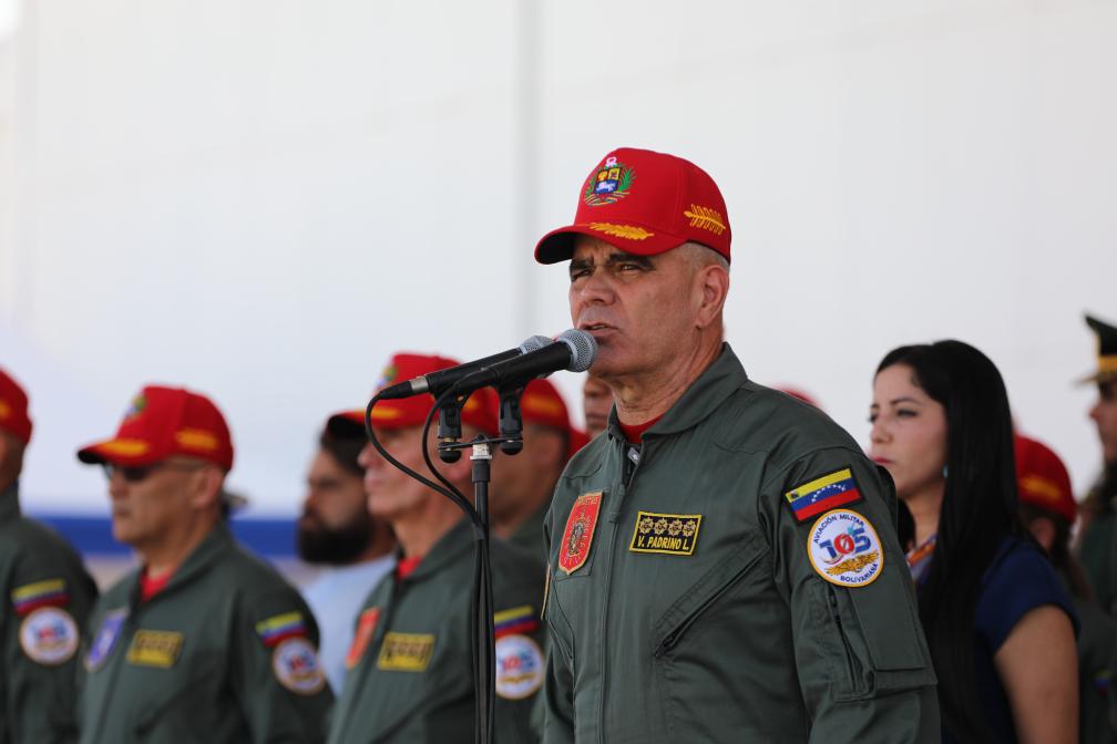 11月27日,在委內瑞拉馬拉凱市的解放者空軍基地,委內瑞拉國防部長洛佩斯在空軍成立105周年紀念活動上發(fā)表講話。新華社發(fā)(委內瑞拉國防部供圖)