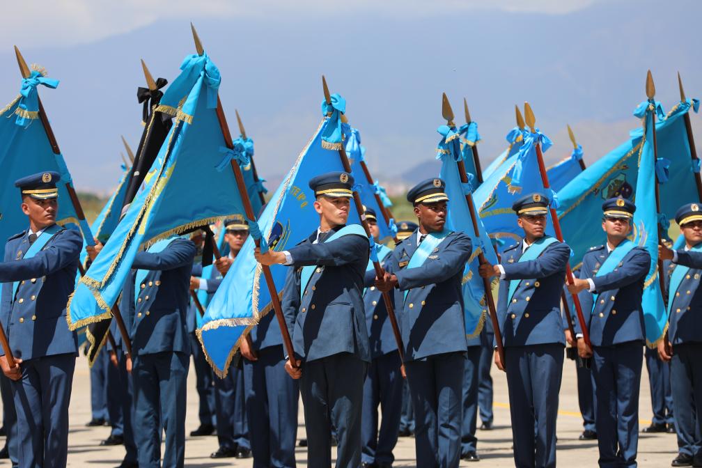 11月27日,在委內瑞拉馬拉凱市的解放者空軍基地,空軍部隊軍人列隊參加空軍成立105周年紀念活動。新華社發(fā)(委內瑞拉國防部供圖)