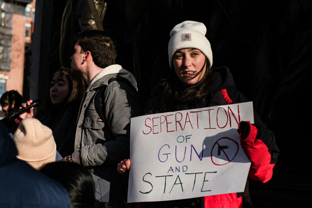 2023年2月24日,在美國(guó)馬薩諸塞州波士頓,當(dāng)?shù)貙W(xué)生參加反槍支暴力集會(huì)。新華社發(fā)(朱子于攝)