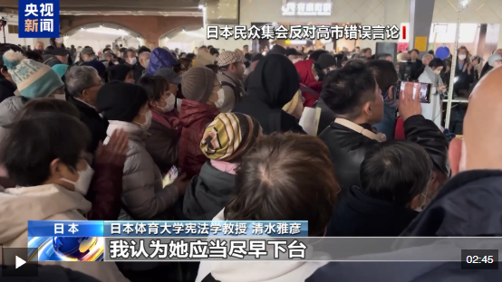 日本體育大學(xué)憲法學(xué)教授 清水雅彥:高市的相關(guān)發(fā)言無論從日本安保法案,還是《聯(lián)合國憲章》的角度來看,都存在嚴(yán)重問題。從這個意義上講,高市早苗否定《中日聯(lián)合聲明》,無視法律并且暴露自身無知,是東亞地區(qū)的不穩(wěn)定因素。因此,她的那番發(fā)言應(yīng)撤回,如果無法撤回,我認(rèn)為她應(yīng)當(dāng)盡早下臺。
