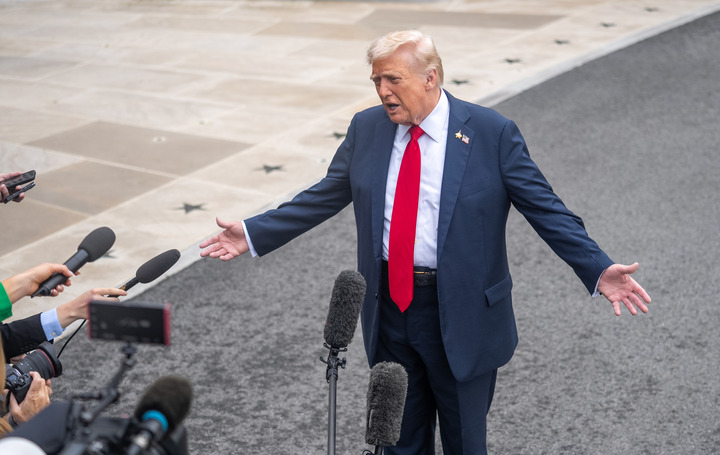 2025年9月30日,在美國首都華盛頓白宮,美國總統(tǒng)特朗普回答記者提問時表示,美國政府正在考慮打擊通過陸路向美國走私毒品的委內瑞拉販毒集團。新華社記者 胡友松 攝