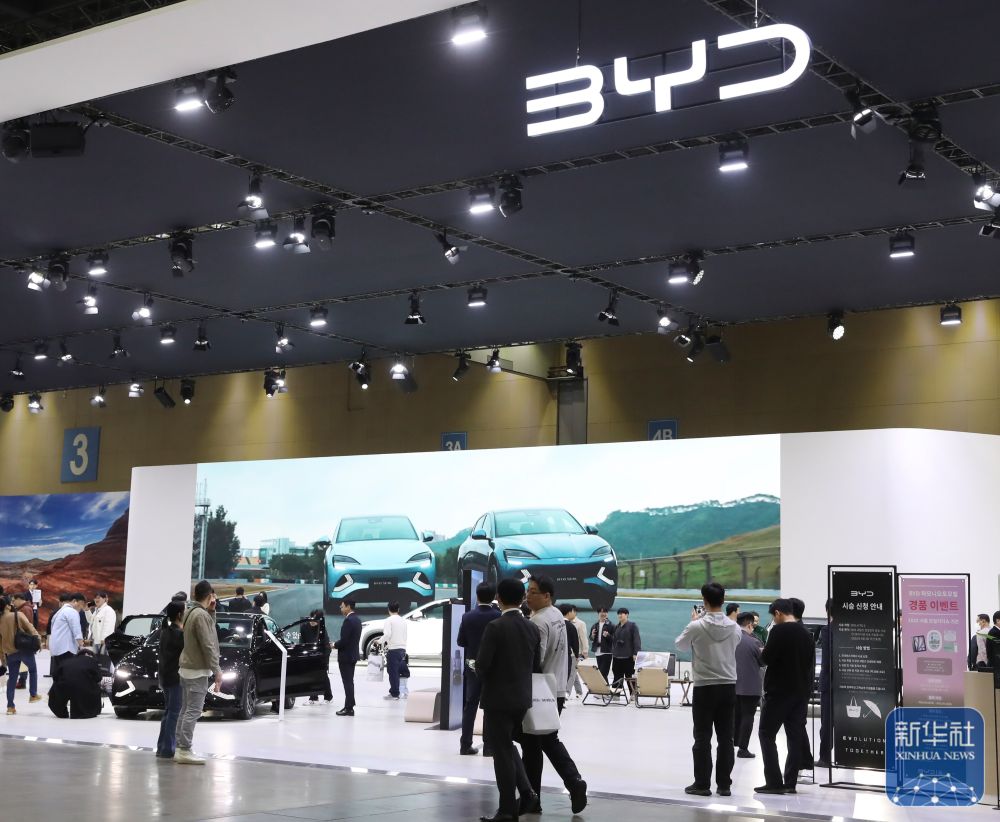 2025年4月8日,在韓國(guó)高陽(yáng)舉行的 “2025首爾移動(dòng)出行展”上,觀眾參觀中國(guó)品牌比亞迪展區(qū)。