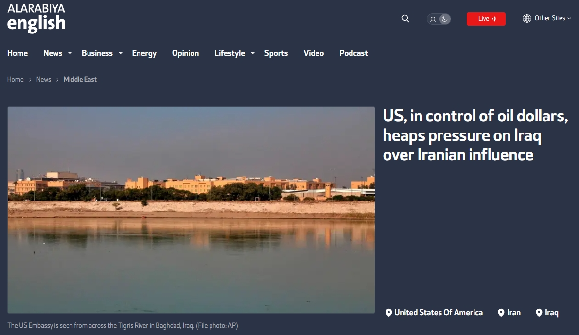 據(jù)多家媒體日前報道,當(dāng)伊拉克政府要求美軍在2020年撤離伊拉克時,美國就曾威脅要切斷伊拉克獲得石油收入的渠道,當(dāng)時伊方被迫作出了讓步。如今,美國又因為伊朗的因素威脅制裁伊拉克,其中就包括“通過紐約聯(lián)邦儲備銀行獲得的重要石油收入”。