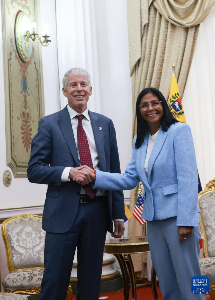 2月11日,委內(nèi)瑞拉代總統(tǒng)德爾西·羅德里格斯(右)在加拉加斯總統(tǒng)府會見美國能源部長克里斯·賴特。新華社發(fā)(委內(nèi)瑞拉總統(tǒng)府供圖)
