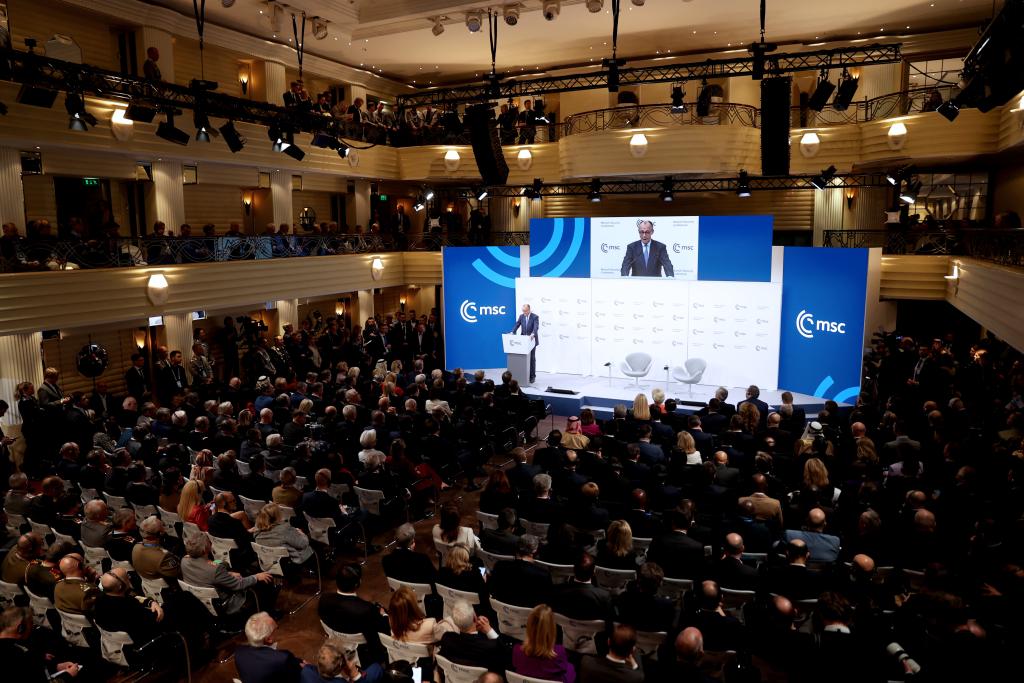 2月13日,在德國慕尼黑,德國總理默茨在第62屆慕尼黑安全會議開幕式上致辭。新華社記者李穎攝