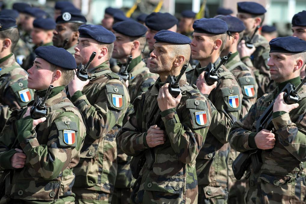 2017年4月20日,在愛沙尼亞北部塔帕陸軍基地,法國士兵出席閱兵儀式。新華社發(fā)(謝爾蓋·斯捷潘諾夫攝)
