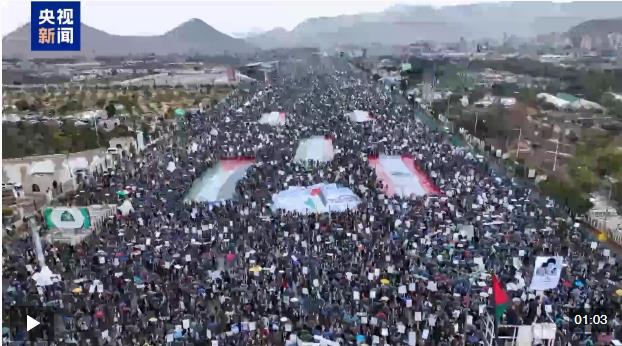 總臺(tái)報(bào)道員 哈?!ぐ湍肥材滤梗?/strong>與許多國(guó)家舉行的集會(huì)一樣,在也門首都薩那南部的七十廣場(chǎng), 當(dāng)?shù)孛癖娨才e行了大規(guī)模游行活動(dòng)。當(dāng)前,隨著美以持續(xù)對(duì)伊朗發(fā)動(dòng)軍事打擊,外界對(duì)戰(zhàn)爭(zhēng)外溢的擔(dān)憂正在加劇。
