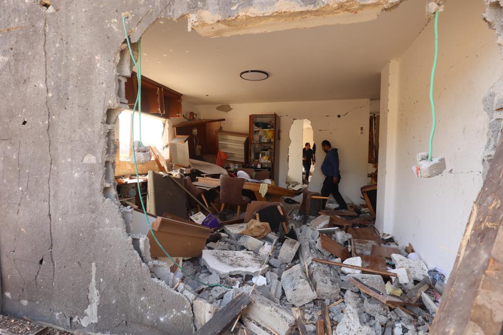 3月13日,人們在以色列北部城鎮(zhèn)扎爾齊爾一處遭伊朗導(dǎo)彈襲擊的地點查看。新華社發(fā)(吉爾·科恩·馬根攝)