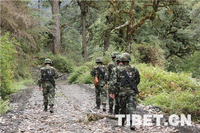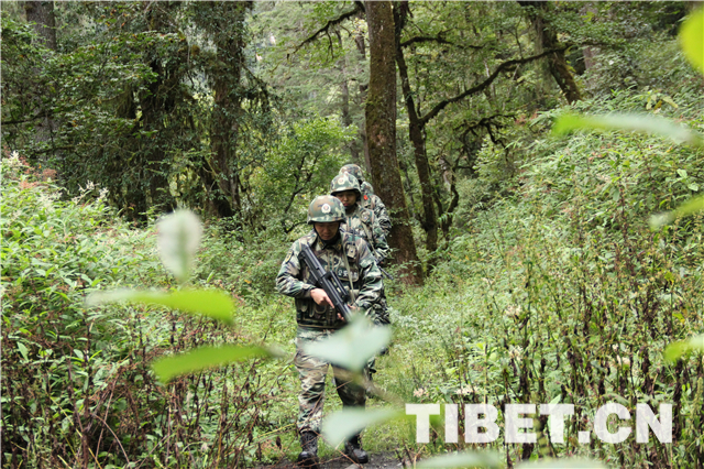 圖為邊防戰(zhàn)士在叢林深處巡邏