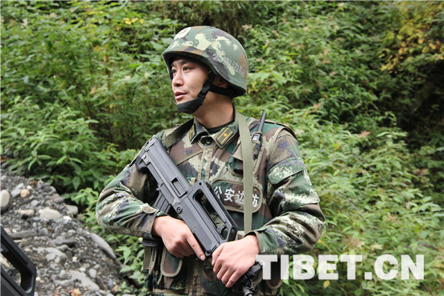 圖為邊防官兵觀察可能出現(xiàn)的險(xiǎn)情