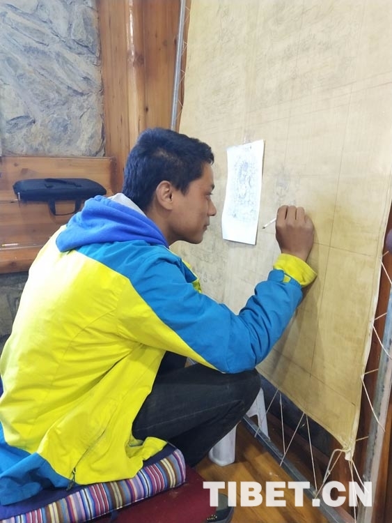24歲的九麥郎加到這里學(xué)畫唐卡已經(jīng)三年有余。此前,他在家里干些普通家務(wù),看到鄰居家的孩子們都個個成為了唐卡繪畫大師,他也有了學(xué)習(xí)唐卡的想法。2015年初,九麥郎加下定決心學(xué)習(xí)郎卡杰唐卡繪制。他告訴記者,他的夢想就是為熱愛唐卡的人畫唐卡,也希望自己將來能成為一名唐卡老師,繼續(xù)傳承這門古老藝術(shù)。