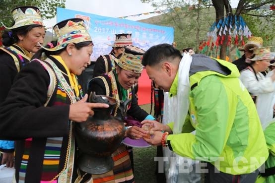 圖為西藏山南瓊結(jié)縣強(qiáng)吉村三組村民為遠(yuǎn)方來的游客敬獻(xiàn)青稞酒。攝影:曲杰