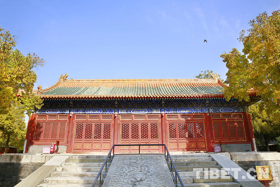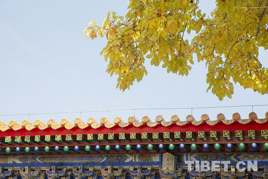中國西藏網(wǎng)訊 西黃寺位于北京德勝門外,是五世達(dá)賴?yán)锇⑼_桑嘉措和六世班禪羅桑巴丹益西在北京的駐錫地,在藏傳佛教界具有重要影響。圖為深秋時節(jié),西黃寺的大殿 攝影:許娜