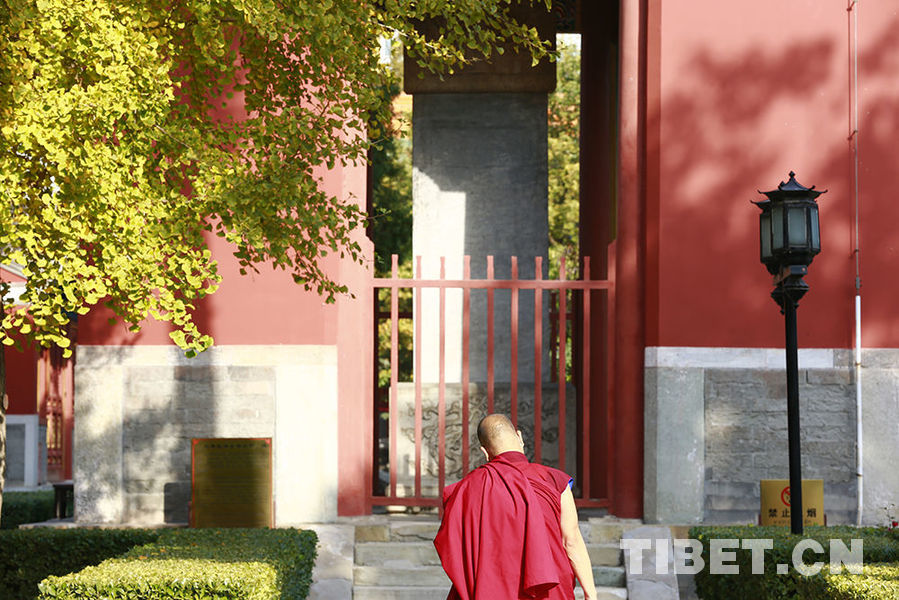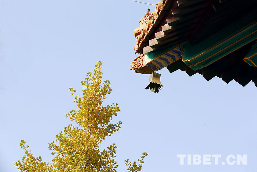 秋葉紛紛,檀香裊裊,陽光下漫步,感受西黃寺的深秋之美。(中國西藏網(wǎng) 文、圖/許娜)