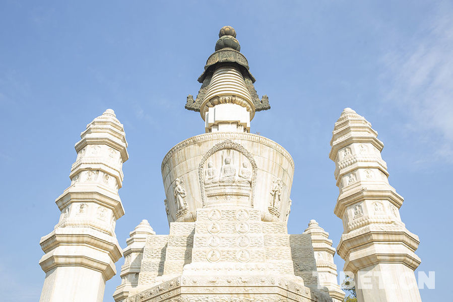 藍(lán)天下的清凈化城塔,莊嚴(yán)靜謐,這是一座衣冠塚與紀(jì)念塔結(jié)合的建筑,為紀(jì)念在該寺圓寂的六世班禪。圖為西黃寺的清凈化城塔 攝影:許娜