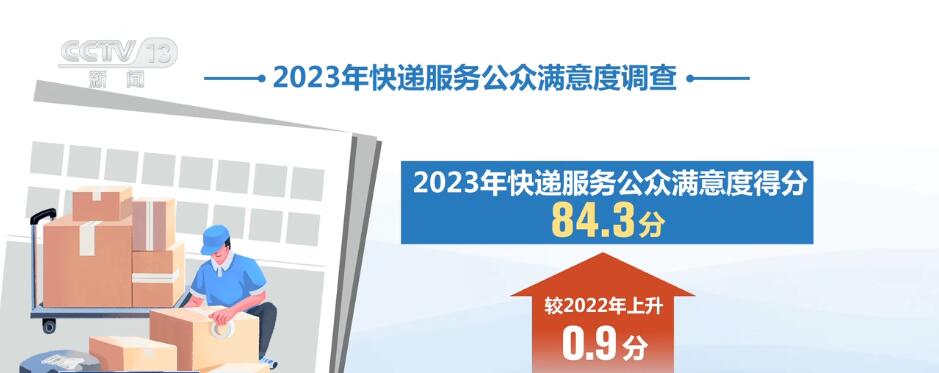 4月8日,國家郵政局發(fā)布調查測試結果顯示,2023年快遞服務公眾滿意度得分為84.3分,較2022年上升0.9分。2023年快遞服務滿意度監(jiān)測對象包括9家快遞服務品牌,調查范圍覆蓋50個城市,采用在線調查等方式,由2023年使用快遞服務的用戶對受理、攬收、投遞、售后和信息5個方面進行滿意度評價,共獲得有效樣本17.5萬個。