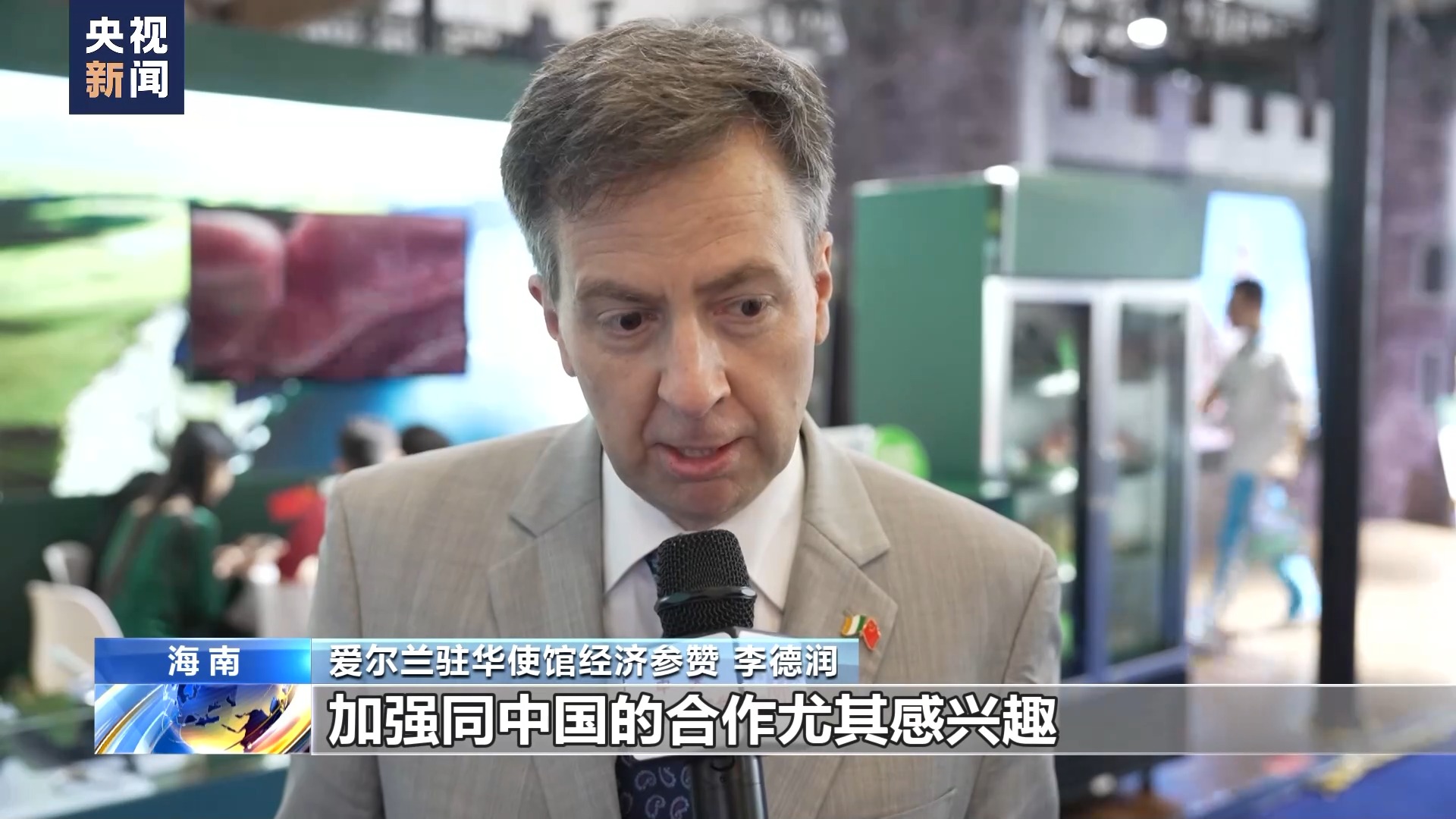 以新能源汽車、鋰電池、太陽能電池為代表的“新三樣”已經(jīng)是中國外貿(mào)的新名片。作為本屆消博會的主賓國,愛爾蘭駐華使館經(jīng)濟參贊李德潤在接受總臺記者采訪時表示,期待中國與愛爾蘭在綠色發(fā)展方面加強合作。