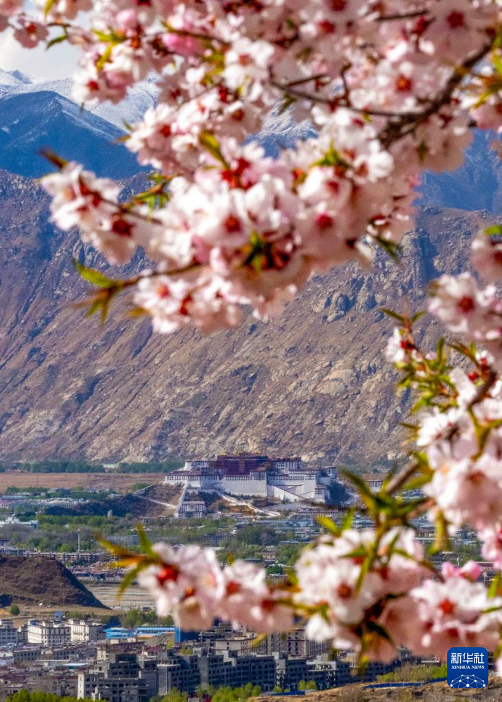 ??桃花映襯著布達(dá)拉宮(4月17日攝)。新華社記者 姜帆 攝