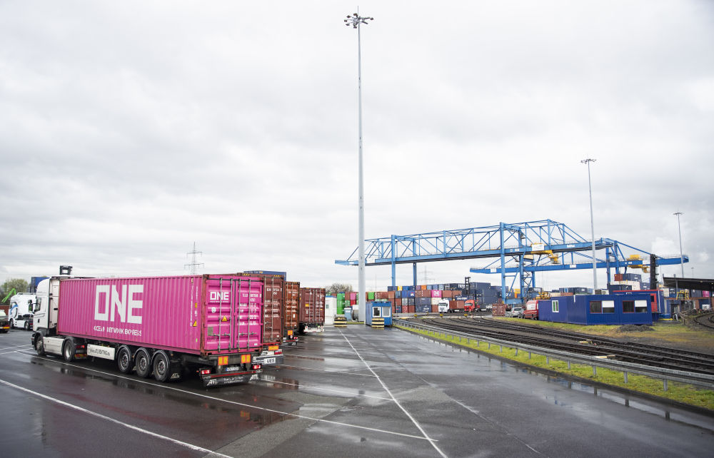 位于萊茵河西岸的杜伊斯堡港DIT貨運(yùn)場站,是中歐班列的主要操作場站。目前,每周約有60列中歐班列抵達(dá)這里。數(shù)臺幾十米高的起重機(jī)和各類裝卸設(shè)備緊密配合作業(yè),將卸下的集裝箱碼放整齊,形成一座座連綿不絕的“小山”。隨后,這些跋涉萬里、種類豐富的中國貨品通過水路、鐵路或公路運(yùn)輸,送往周邊城市和其他歐洲國家。
