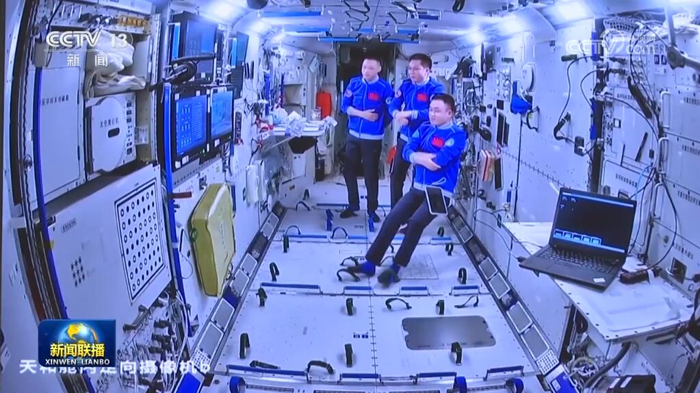正在空間站執(zhí)行任務(wù)的神舟十七號乘組在軌觀看神舟十八號載人飛行任務(wù)新聞發(fā)布會和記者見面會。