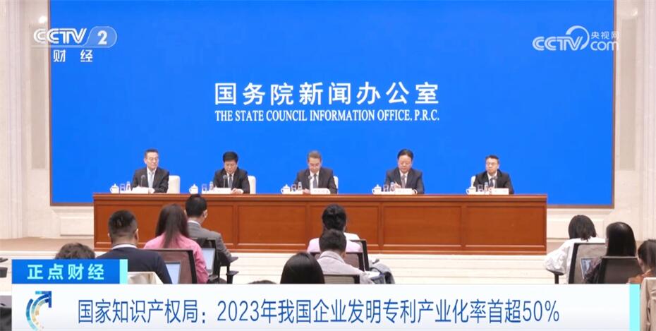 記者4月24日從國(guó)際知識(shí)產(chǎn)權(quán)局了解到,2023年,我國(guó)企業(yè)發(fā)明專(zhuān)利產(chǎn)業(yè)化率首次超過(guò)50%,來(lái)看報(bào)道。