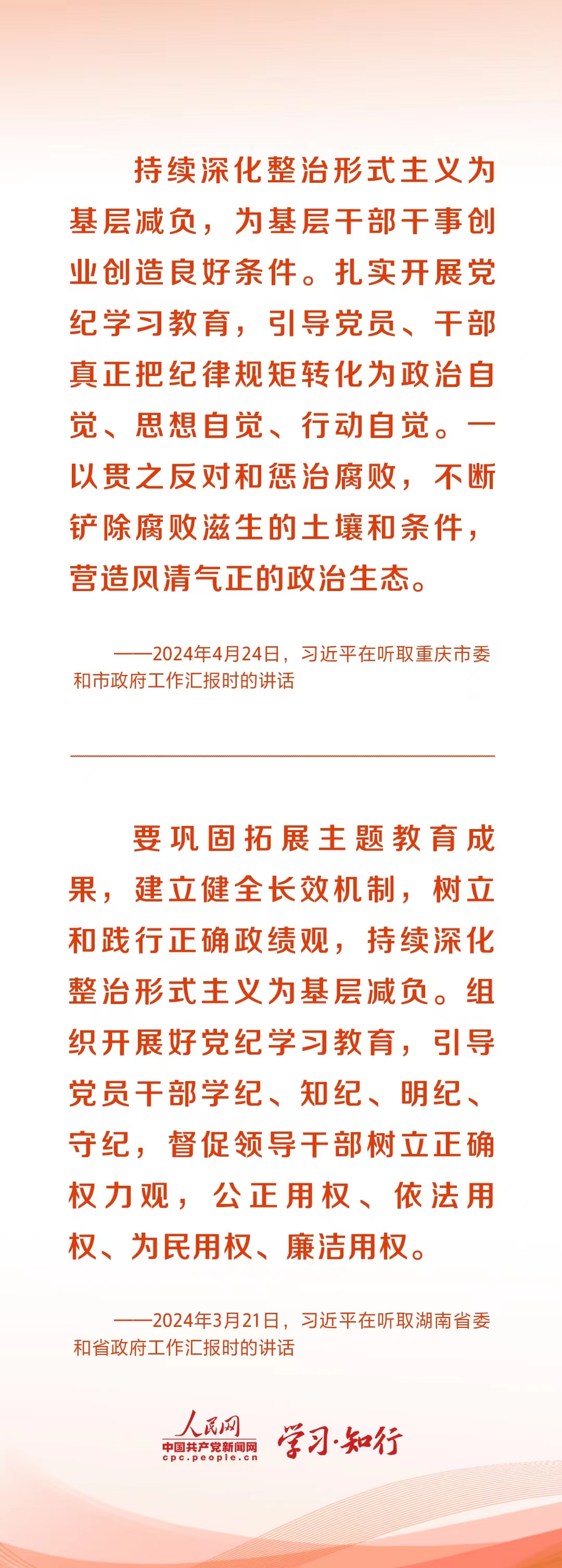 在新時代推動西部大開發(fā)座談會上,習(xí)近平再次明確,“鞏固拓展主題教育成果,抓好黨紀(jì)學(xué)習(xí)教育,持續(xù)整治形式主義為基層減負(fù)。”