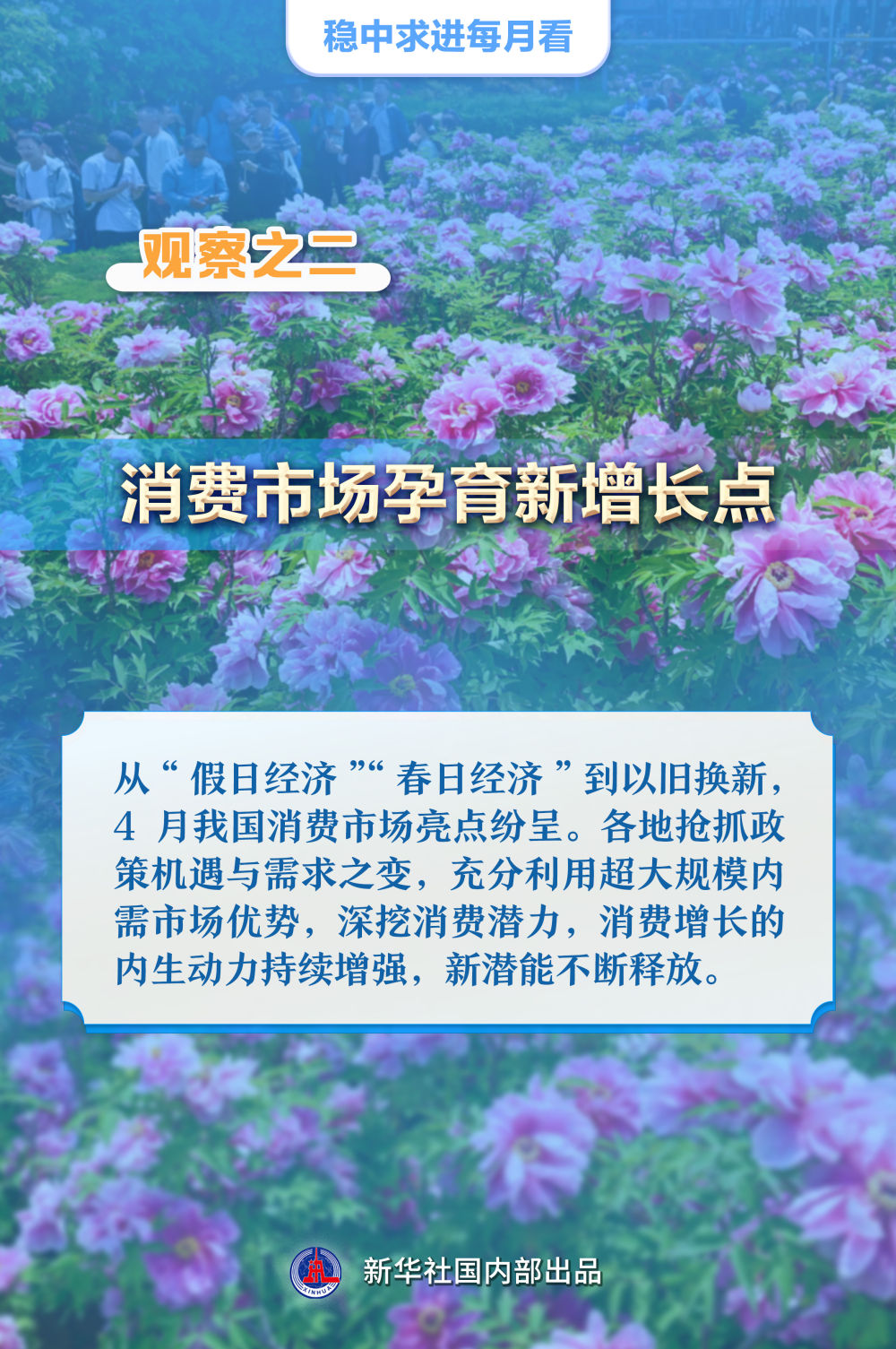 【記者觀察】從“假日經(jīng)濟(jì)”“春日經(jīng)濟(jì)”到以舊換新,4月我國消費(fèi)市場亮點紛呈。各地?fù)屪フ邫C(jī)遇與需求之變,充分利用超大規(guī)模內(nèi)需市場優(yōu)勢,深挖消費(fèi)潛力,消費(fèi)增長的內(nèi)生動力持續(xù)增強(qiáng),新潛能不斷釋放。