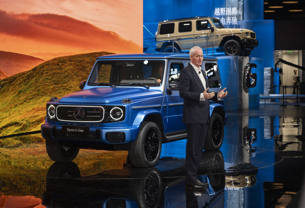 4月25日,在北京中國國際展覽中心順義館舉行的2024北京車展上,梅賽德斯—奔馳集團(tuán)股份公司董事會成員唐仕凱介紹梅賽德斯—奔馳純電G級越野車。新華社記者才揚(yáng)攝