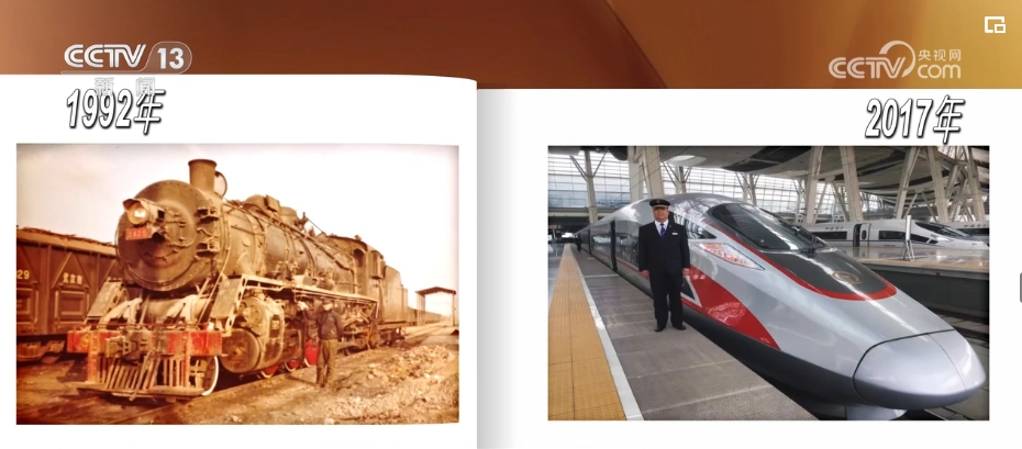 這張稍顯模糊的老照片是1992年,韓軍甲剛參加工作時拍下的。他身邊的蒸汽機車當時的運行時速一般只能開到50公里左右,這個風華正茂的年輕人從未設(shè)想過,20多年后的2017年,他能駕駛時速350公里的復(fù)興號列車。