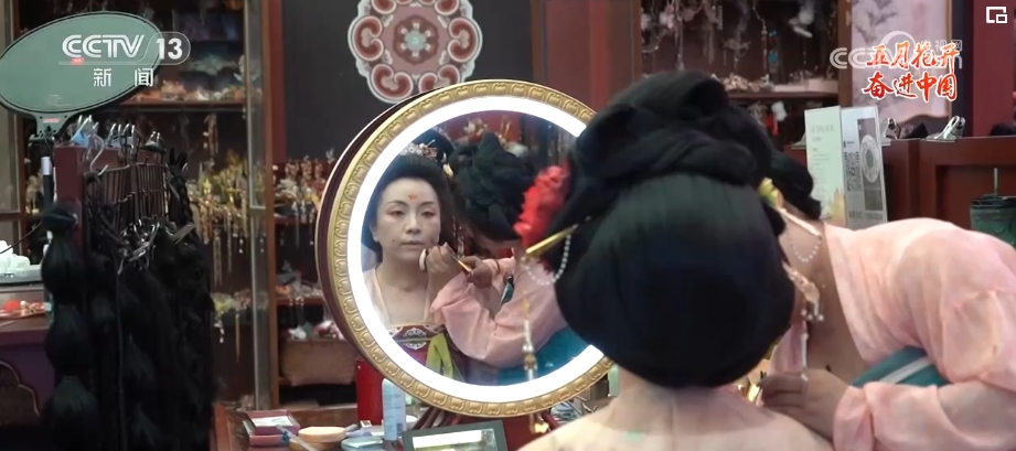 在陜西西安,有這樣一位年輕人,她仿佛擁有一種復(fù)刻舊時光的魔力。敷粉、畫眉、點唇,穿上漢服、戴上發(fā)飾,不到1個小時,一個現(xiàn)代的女孩就穿越回了漢唐?!?0后”漢服妝造師胡芯銀,讓今人和古人在裝束上相逢。