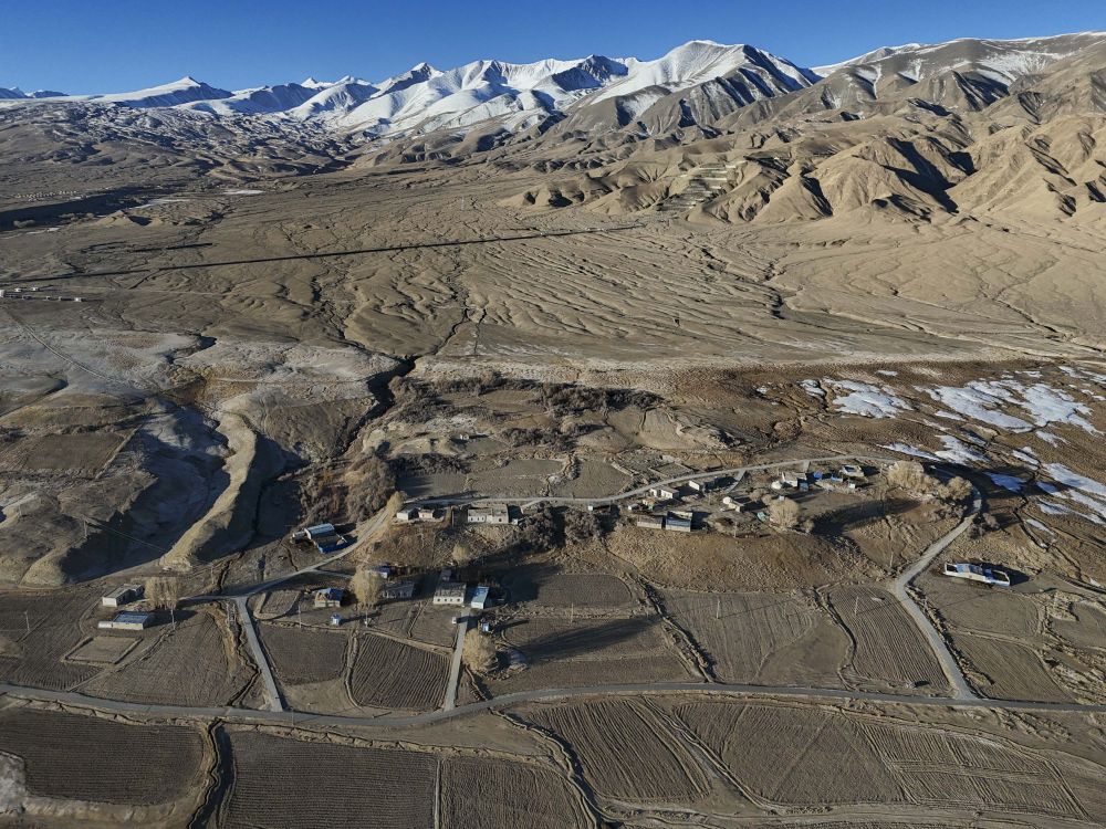 艾爾開(kāi)牙·多力開(kāi)家住帕米爾高原上的新疆塔什庫(kù)爾干塔吉克自治縣瓦恰鄉(xiāng)夏布孜喀拉村(2024年3月23日攝,無(wú)人機(jī)照片)。
