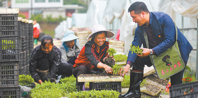 貴州省黔西市雨朵鎮(zhèn)小水井村駐村第一書(shū)記符蘭平(右一)向村民了解生產(chǎn)情況。 周訓(xùn)超攝(人民視覺(jué))
