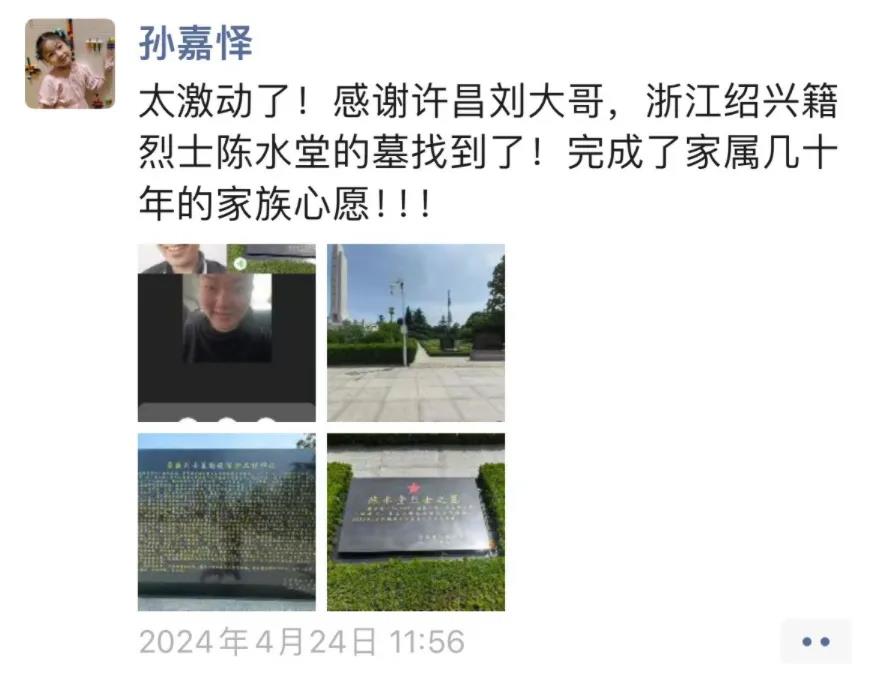 隨后,孫嘉懌聯(lián)系了許昌當?shù)氐闹驹刚撸诹沂苛陥@內(nèi),他們找到了陳水堂烈士的名字。從接到求助到完成,前后不到24小時。然而,在孫嘉懌經(jīng)歷的案例中,這樣的其實是極少數(shù)。