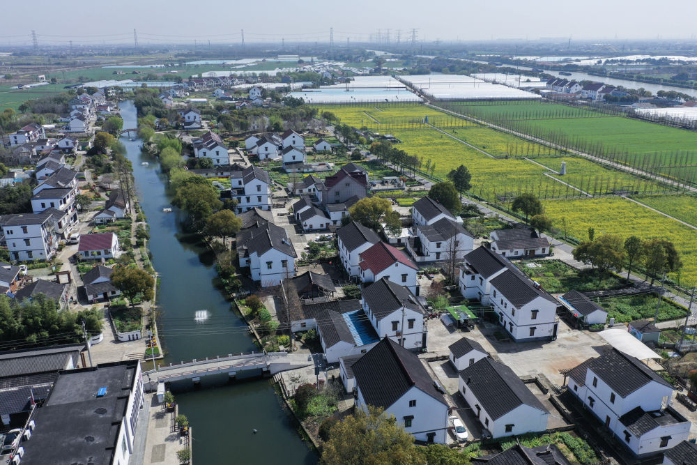 這是浙江省嘉興市嘉善縣姚莊鎮(zhèn)橫港村景色(2024年3月29日攝,無人機(jī)照片)。新華社記者 徐昱 攝