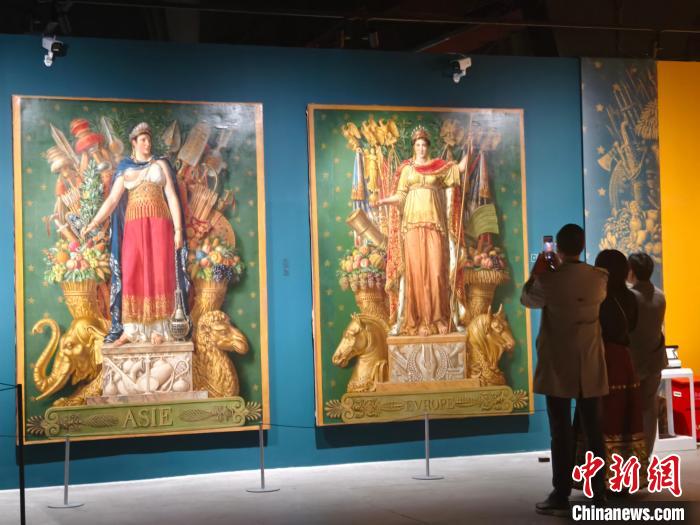 在眾多展品中,一幅名為“亞細亞”的掛毯模板吸引了中國觀眾的視線。勒穆瓦納介紹,這幅和另外三幅分別代表歐洲、非洲和美洲的掛毯為一組,共同陳列在杜樂麗宮的狄安娜大廳中,“它展示西方對未知世界的好奇心。駱駝、香爐等一些象征性物品代表亞洲,但它是一個夢想中的亞洲,而不是真實的亞洲”。