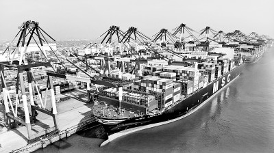 貨輪在山東青島港裝卸集裝箱。新華社發(fā)