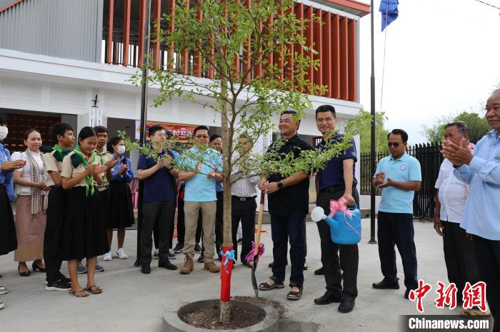 當(dāng)?shù)貢r(shí)間5月12日,在距離金邊以南約60公里的一個(gè)擁有125戶家庭、500余人口的小鄉(xiāng)村,柬埔寨民間社會(huì)組織聯(lián)盟論壇主席蓋里維希揮鏟添泥,中國和平發(fā)展基金會(huì)駐柬埔寨辦事處主任劉戰(zhàn)國提壺澆水,合力種植下一棵象征著中柬友誼的隆都花樹。